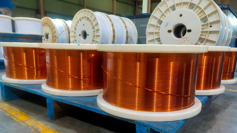 漆包扁線相比圓線,具有占積比高、成型后強度優、比表面積大、散熱性能好等優點。有助于電子電機產品減小體積、增加功率和提高可靠性。廣泛應用于電感、電力變壓器、風力發電機、汽車發電機、電動汽車驅動電機、牽引變壓器等。特色產品有耐高溫漆包銅扁線、耐電暈漆包銅扁線等,扁線規格范圍(截面積):1.000-50.00mm²。